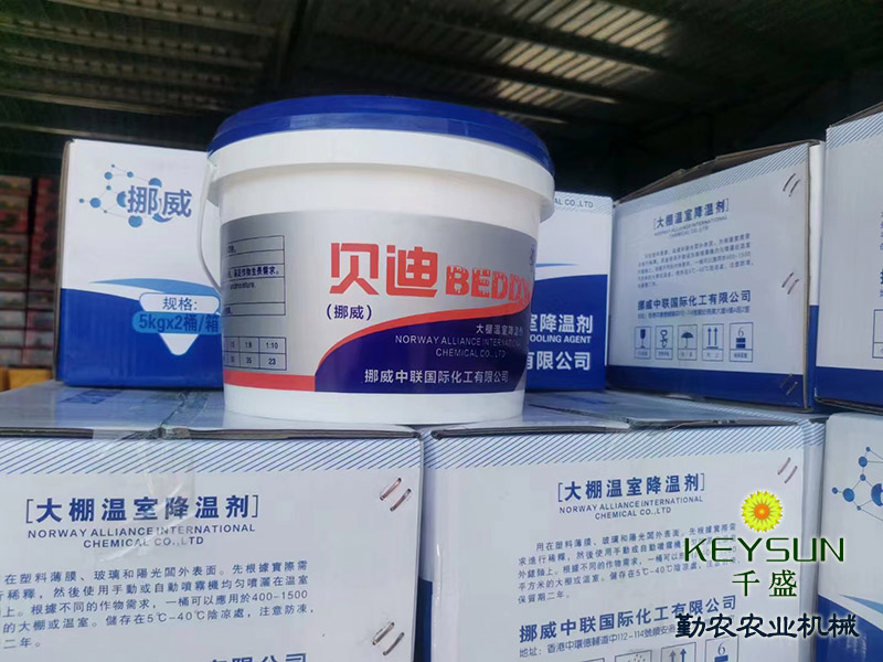 山東禹城勤農(nóng)大棚降溫劑能有效解決蔬菜大棚內(nèi)強光和高溫問題,為作物提供理想的溫光生長環(huán)境。降溫劑在溫室表面形成白色涂層,將太陽直射光轉(zhuǎn)變?yōu)樯⑸涔?,并有效反射產(chǎn)生熱量的紅外光,從而起到遮陽、降溫、防止棚膜老化